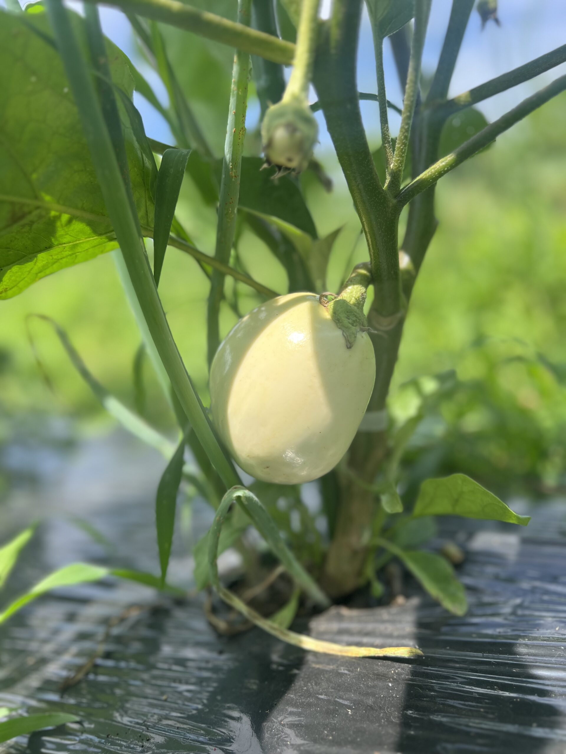 なすが採れ始めました。今年そだてているナスの一つがとろーり旨ナス。真っ白いナスです。本当に真っ白で畑ではとにかく目立ちます。このナス熱を加えると本当に果肉がとろけます。そのままスライしてフライパンで蒸し焼きにするだけでトロトロの食感。チーズなどのせてもお子様に喜ばれるかもしれません。ネットでは唐揚げにするとまるで白子の食感らしいです。そのほかにも生であまーい水ナス、緑ナス、ごちそうナス(黒)などいろいろとやっています。ナスもなかなか奥深い。品種改良の力をかんじます。